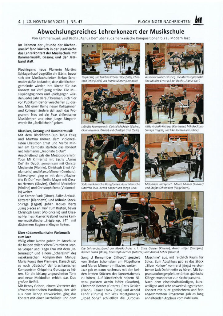 Bericht aus den Plochinger Nachrichten zum Jahreskonzert der Musikschule Plochingen.